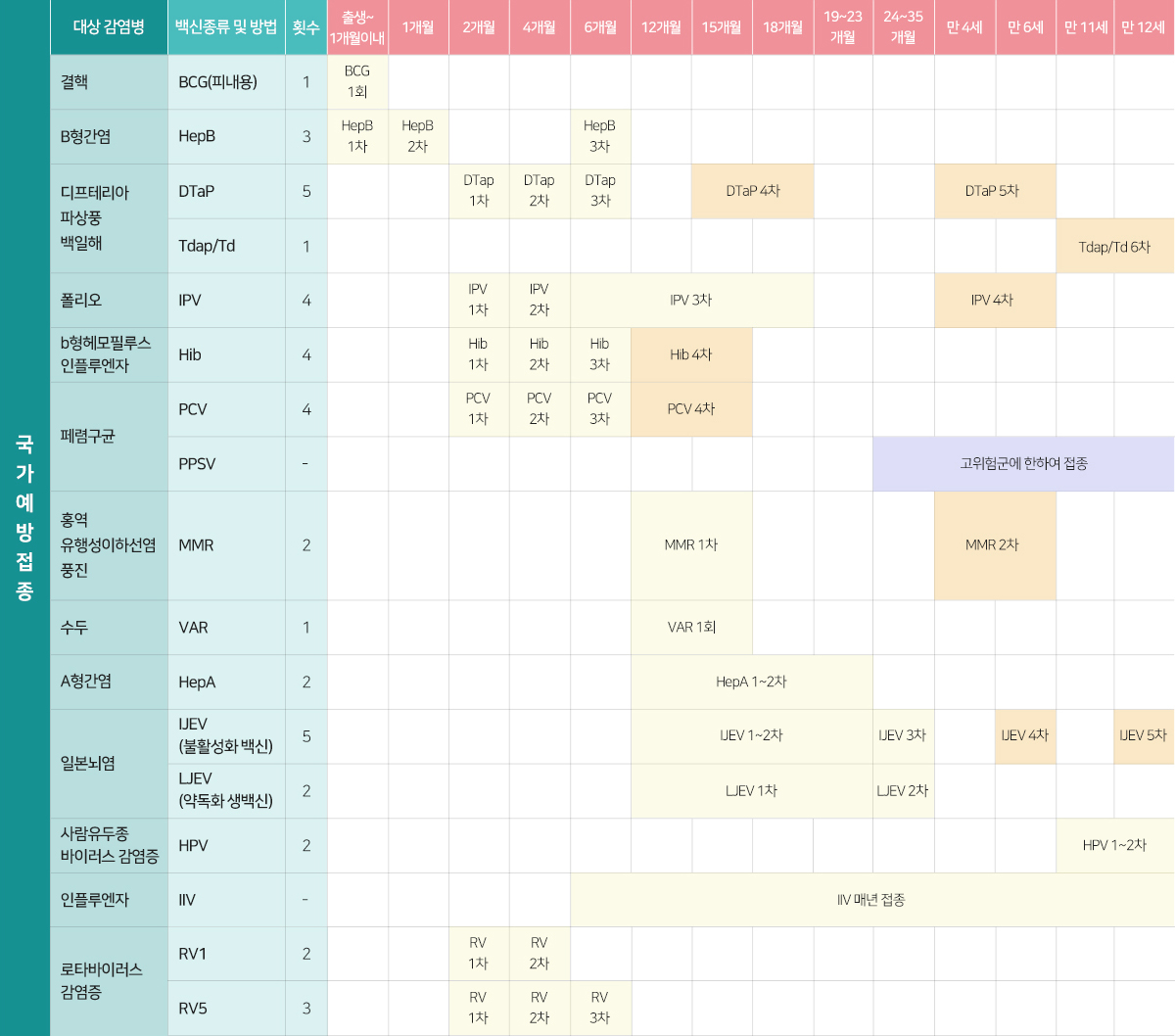 이를 보완하고 병원체로부터 감염 및 방어를 위한 시기별 예방접종이 반드시 필요합니다.